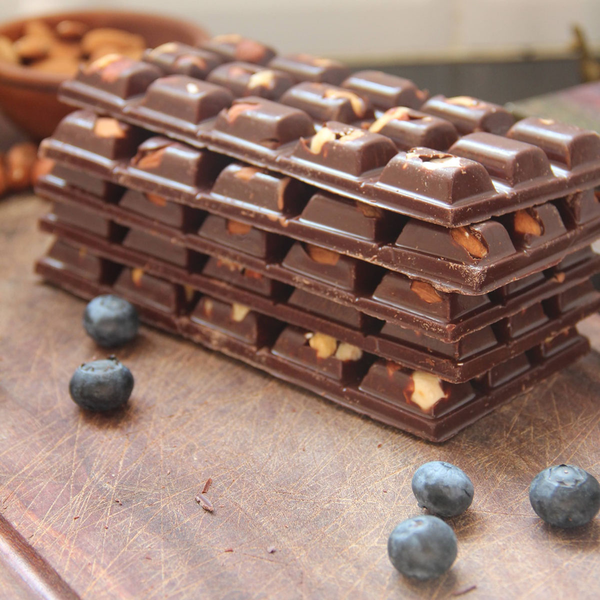 Primer alfajor elaborado con harina de orujo de vino. También variedad de chocolates