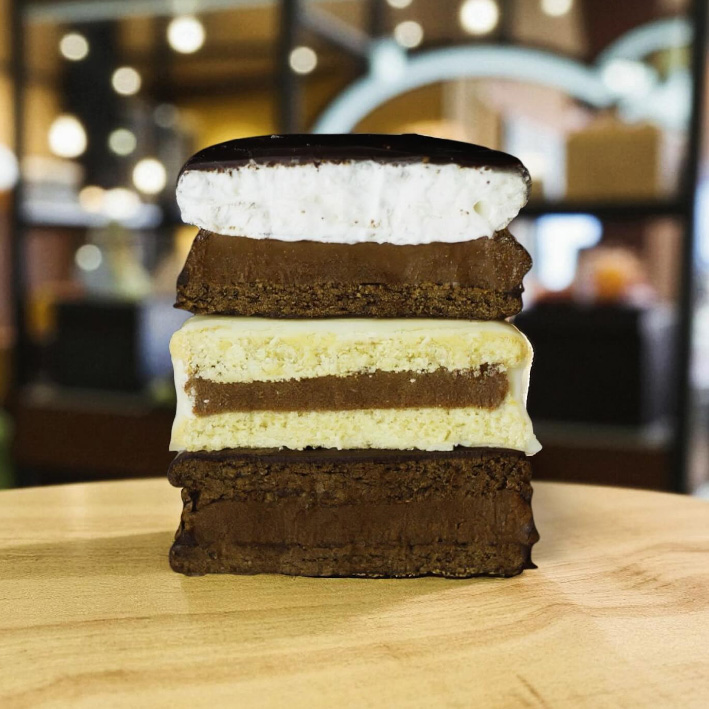 Dulce de leche con tapa de merengue recubierto de Chocolate