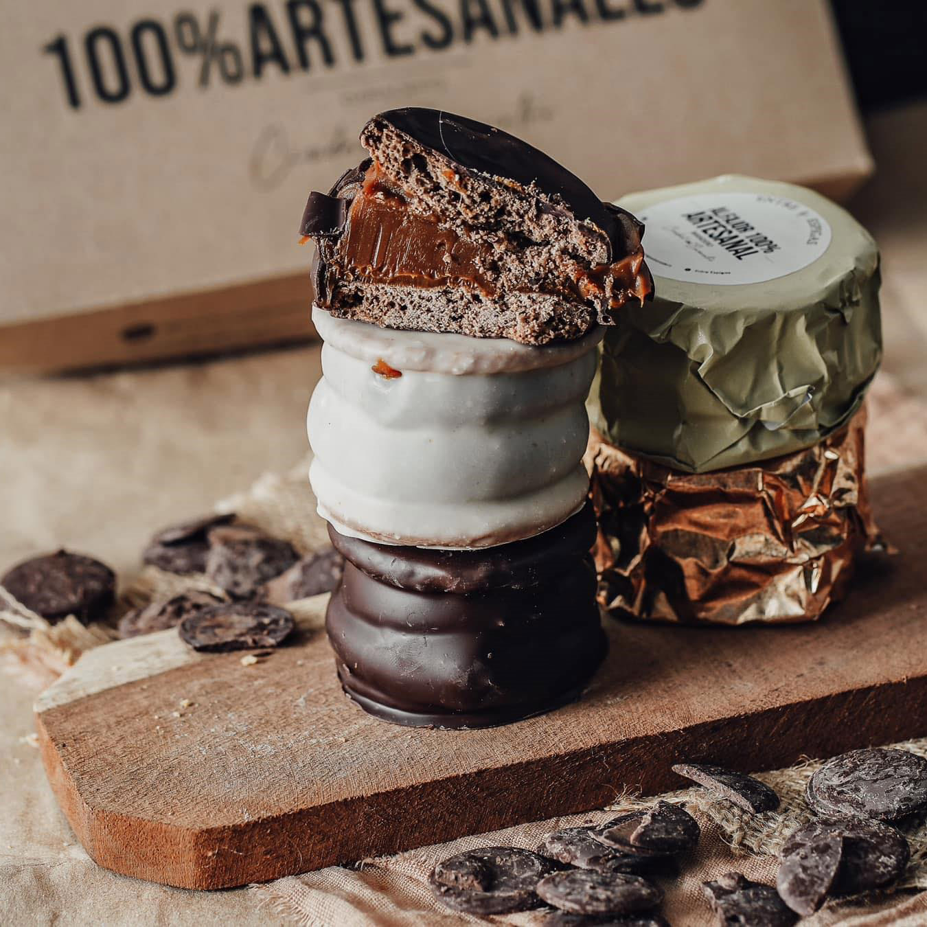 • Chocolate negro: Alfajor de dulce de leche con cobertura de chocolate negro.