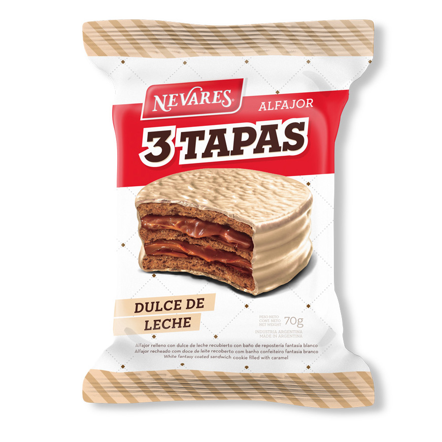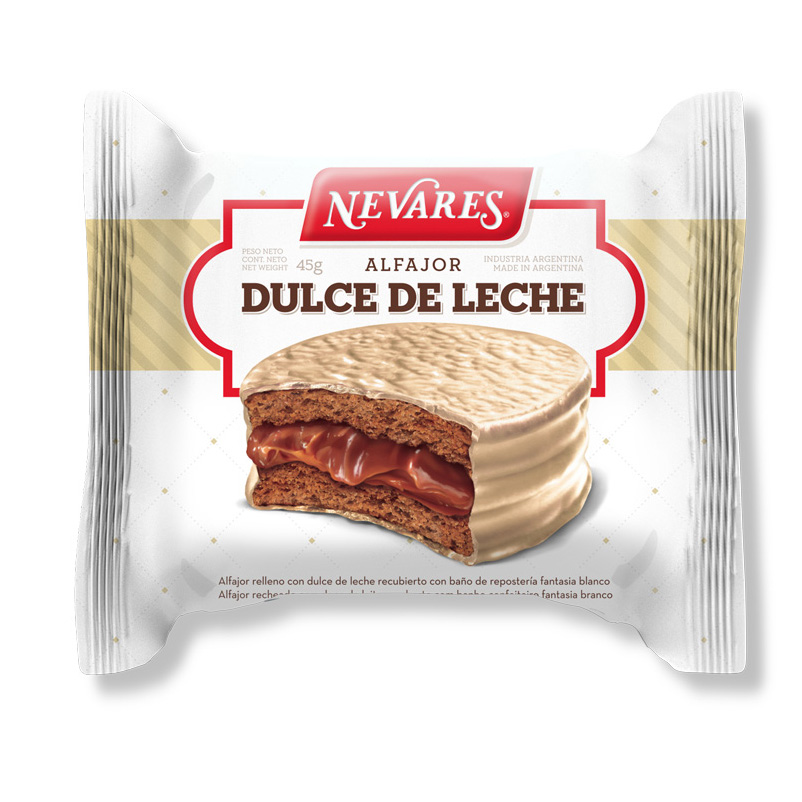 • Dulce de leche recubierto con baño de repostería fantasía blanco, tamaño doble o triple