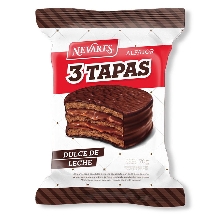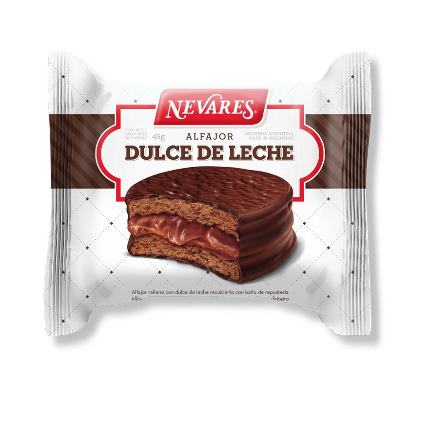 • Dulce de leche recubierto con baño de repostería sabor chocolate, tamaño doble o triple