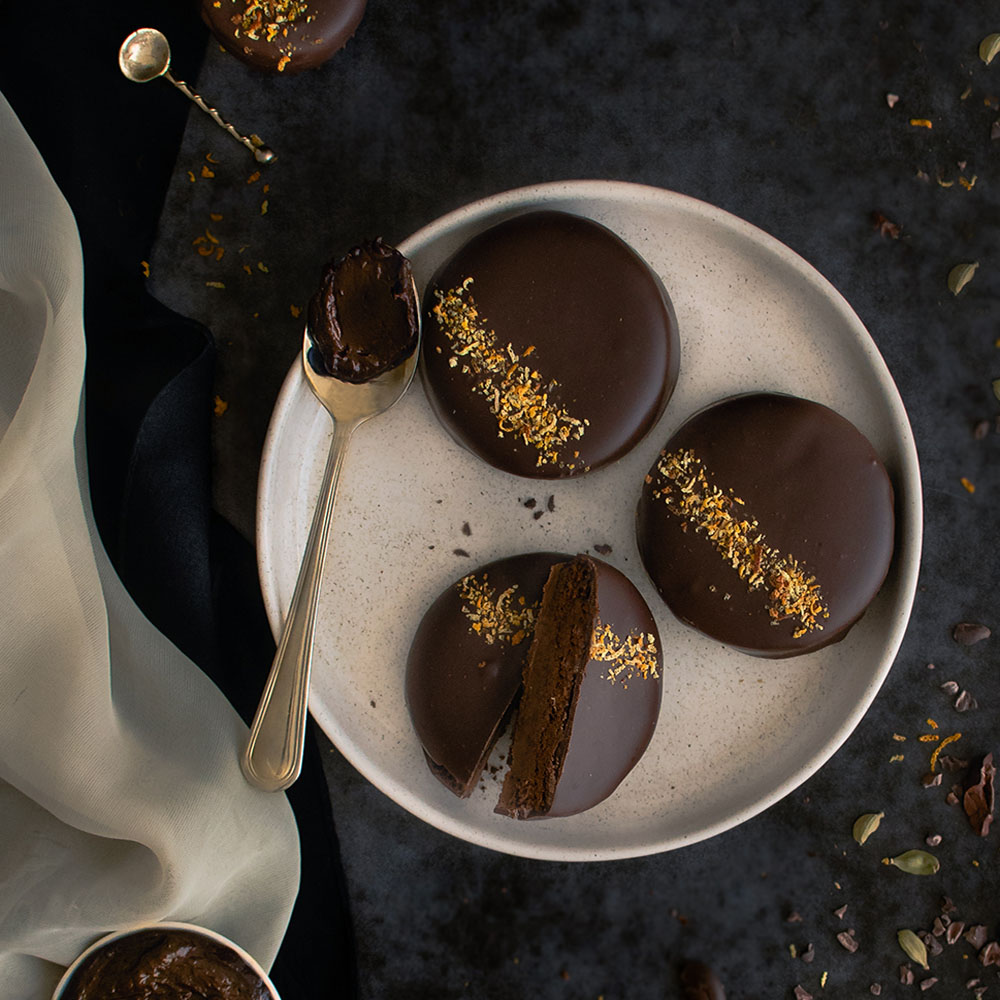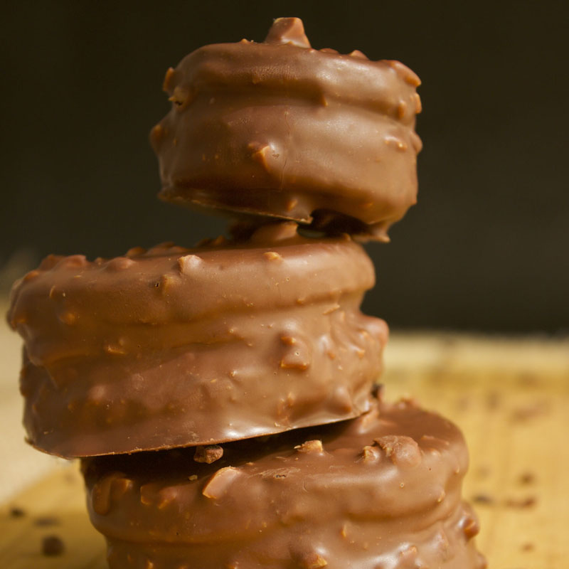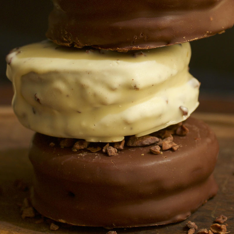 • Dulce de leche y cardamomo con harina de cacao recubierto de chocolate 65%
