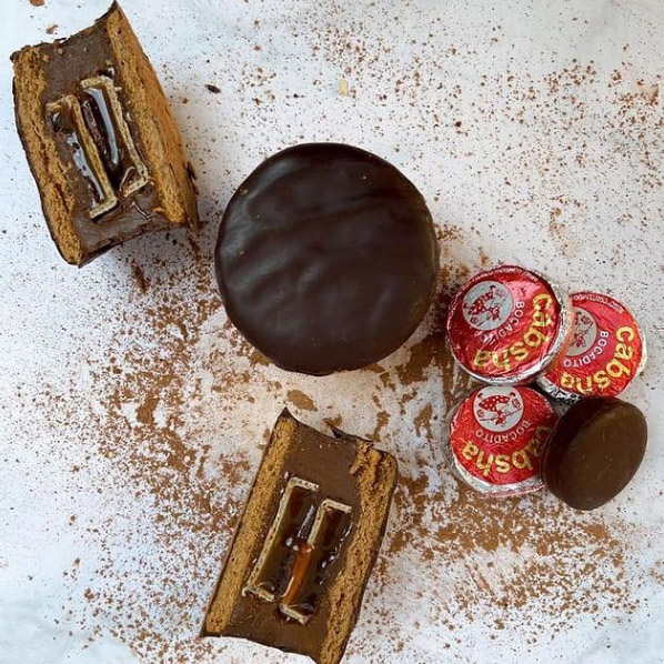 • Dulce de leche recubierto de chocolate tipo marplatense