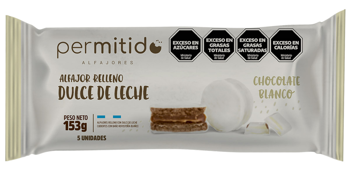 • Bandejas x 5 unid. alfajores mini chocolate blanco relleno de dulce de leche x 153 gr