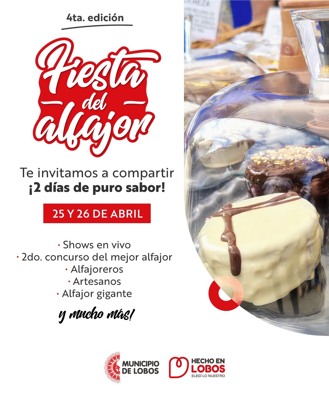 El 25 y 26 de Abril, se llevará a cabo en la ciudad de Lobos la 4ta edición de la Fiesta del Alfajor.