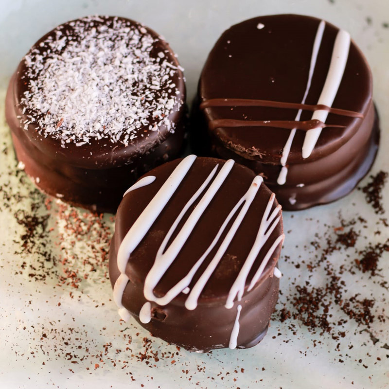 • Dulce de leche con coco recubierto de chocolate