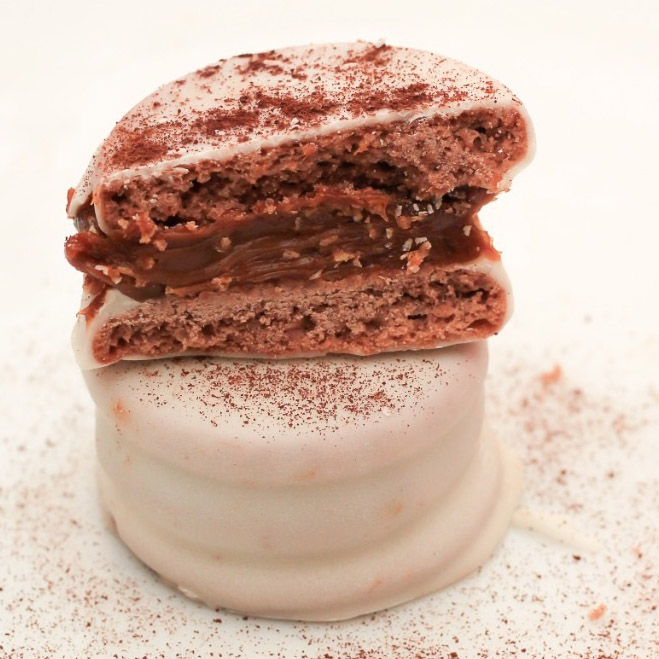 • Dulce de leche recubierto de chocolate blanco