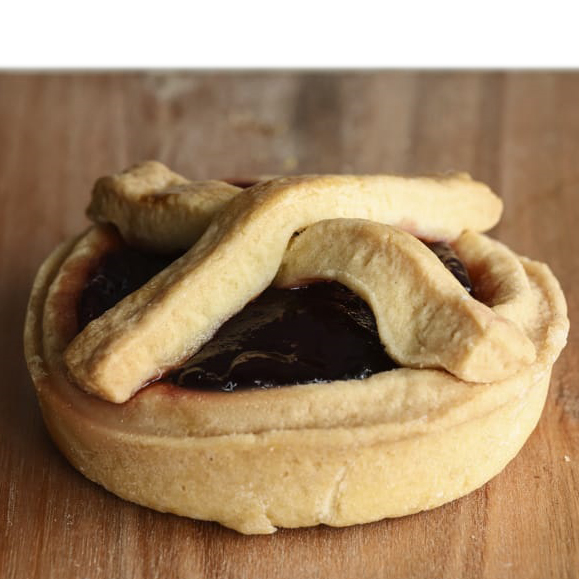 Mini tartita rellena de mermelada de arandanos.